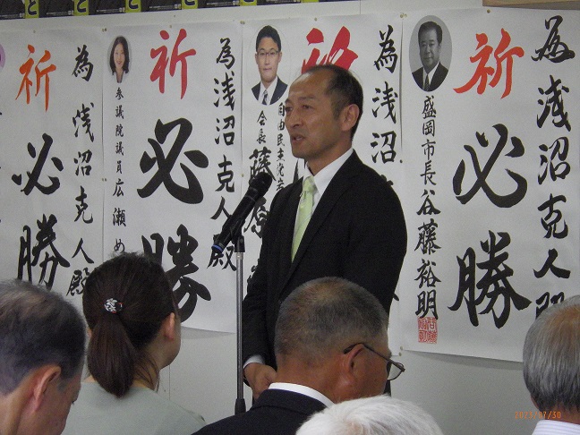 7月30日(日)10時から事務所開きを行いました。 澄み切った青空の下、多くの支持者による熱気の中、たくさんのパワーを頂きました。 忙しいところ谷藤裕明市長にも来て頂き祝辞を賜り感謝感激でした。 また今回も140名を超える方々に来て頂き、大いに盛り上げて頂きました。 恒例のヤクルトで乾杯をしましたが、美味しく健康的で元気いっぱいになりました。 多くの皆様方に感謝し、ご恩返しするべく、これからの戦いにしっかりと勝利していきたいと思っております。